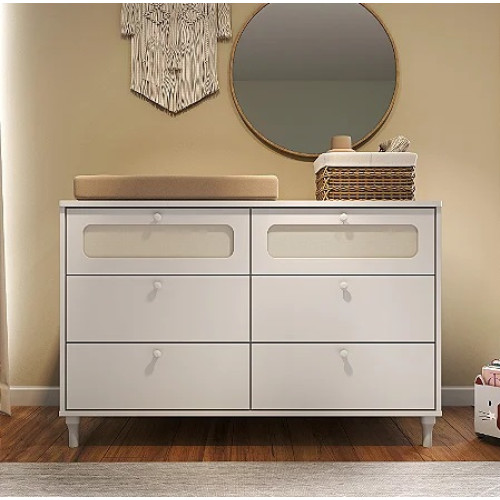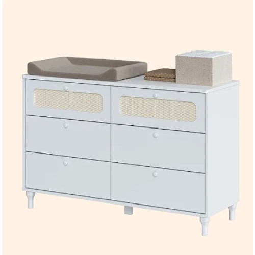 PROMO Cômoda Fofura branca com rattan 6 gavetas
